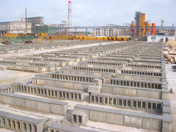 在制作PE内胆的同时准备地模,制作地模的目的是为了保证制作钢混外壳时保证电解槽上沿口的平直,同时由于地模有一定高度可使施工人员进入内部取出内模,这样内模可以循环使用。