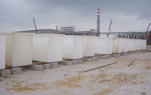 为了保证内胆在与混凝土进行整体浇筑时能达到电解槽工作时的内腔工作尺寸,必须在内胆内用木材支撑到图纸要求的工作尺寸。